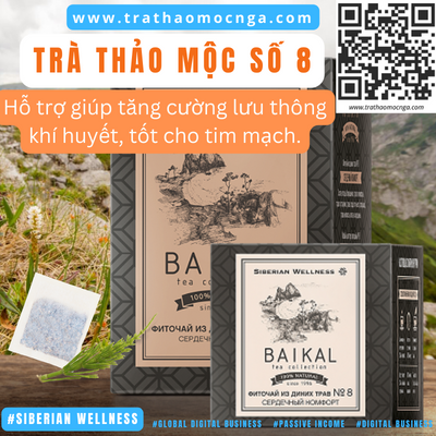 Trà thảo mộc số 8 hỗ trợ trái tim của bạn với các loại thảo dược từ Siberia: lá cây phúc bồn tử đen, quả cây sơn tra, lá tía tô đất và cây ích mẫu, hỗ trợ giúp tăng cường lưu thông khí huyết, tốt cho tim mạch.